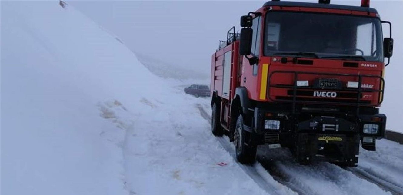 تمكنت فرق تابعة للدفاع المدني اللبناني من إنقاذ مواطنين احتجزتهم الثلوج داخل سياراتهم على طريق عيناتا الأرز - كوع البحص.
