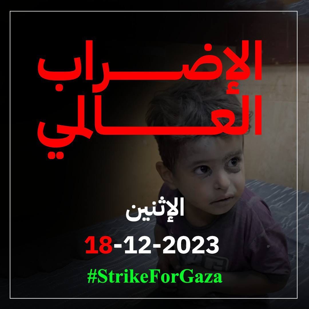 في خطوة اعتبرت استكمالاً للحراك الشعبي العالمي الذي انطلق منذ أيام تضامناً مع غزة، دعت مجموعة "الاضراب الشامل" من مختلف النشطاء حول العالم إلى خطوات تصعيدية تحت عنوان اقتصادي، للضغط باتجاه وقف إطلاق النار ووقف الابادة الجماعية في غزة، وذلك من خلال بيان تمّ اطلاقه عبر مواقع التواصل وتفاعل معه عدد كبير من المؤثرين.