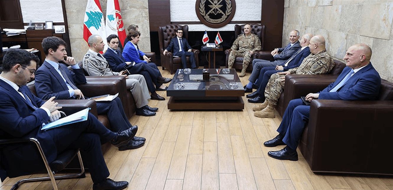 إلتقى قائد الجيش العماد جوزاف عون، في مكتبه، في اليرزة، وزير الخارجية الفرنسي ستيفان سيجورنيه، في حضور مديرة شؤون إفريقيا الشمالية والشرق الأوسط في الإدارة المركزية لوزارة الخارجية الفرنسية آن غريو، والسفير الفرنسي هيرفيه ماغرو.
