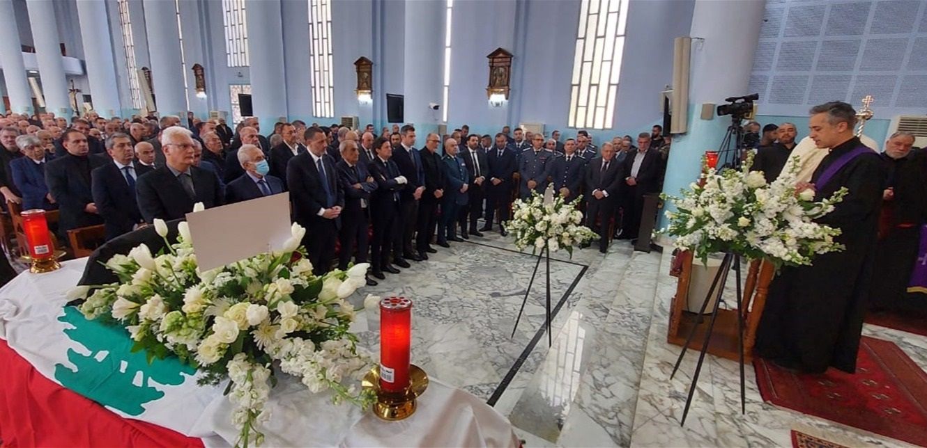 وكان وصل الجثمان إلى الكنيسة محمولا على اكف عناصر الجيش ومغطى بالعلم اللبناني، وأدت ثلة من الجيش التحية، وعزفت فرقة الموسيقى في الجيش نشيد الموت. كما اجريت له مراسم التشريفات العسكرية في نهاية القداس، قبل أن يوارى في الثرى في مدافن العائلة.