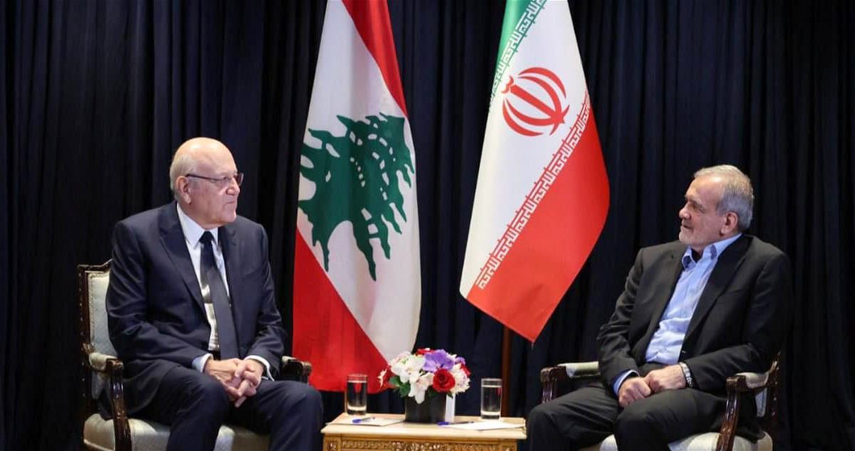 كما التقى رئيس الحكومة الرئيس الإيراني مسعود بزشكيان وتم عرض العلاقات الثنائية بين لبنان وايران والوضع في المنطقة.