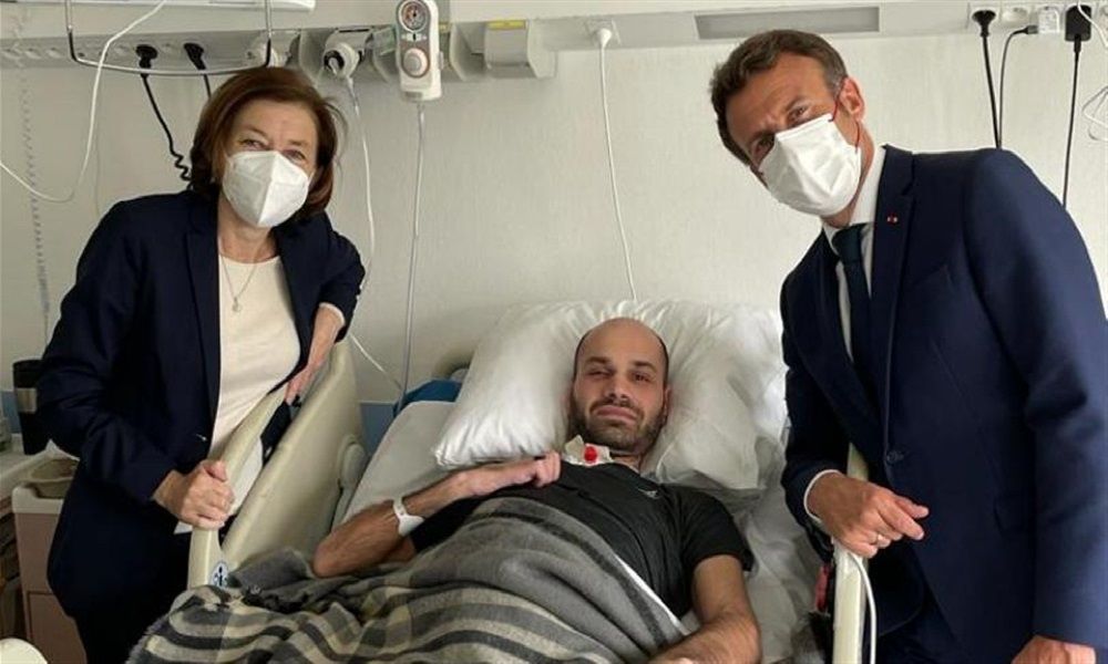 زار الرئيس الفرنسي إيمانويل ماكرون والسفيرة الفرنسية في لبنان آن غريو أحد العسكريين في الجيش اللبناني الذي يتلقى العلاج في أحد مستشفيات باريس، بعد إصابته بجروح بالغة العام الماضي، خلال عمليّة دهم لقوة من مديرية المخابرات في البقاع لتجّار مخدرات.
