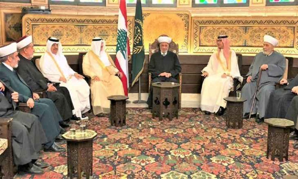 والتقى دريان في دار الفتوى سفراء مجلس التعاون الخليجي في لبنان وضم: عميد السلك الدبلوماسي العربي سفير دولة الكويت عبد العال القناعي وسفير السعودية وليد بخاري، وسفير قطر إبراهيم السهلاوي بحضور مفتي المناطق في لبنان”.