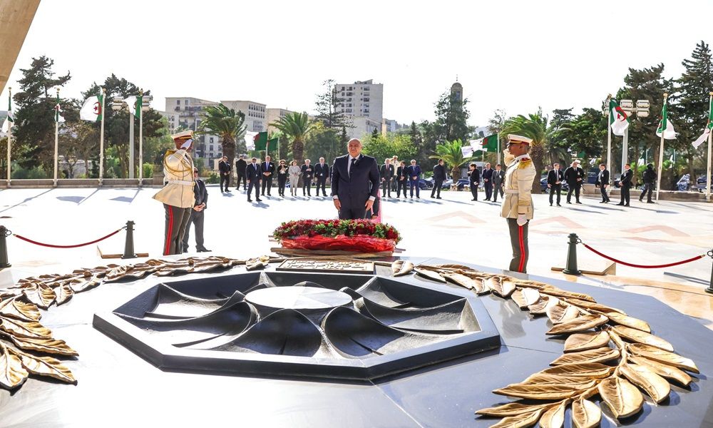 وبعدها، توجه عون برفقة الوزير الجزائري المرافق محمد عرقاب الى مقام الشهيد حيث وضع اكليلاً من الزهر على ضريح أرواح الشهداء الجزائريين، عربون تقدير واحترام لتضحياتهم من اجل الوصول بالجزائر الى مصاف الدول المستقلة والفاعلة في محيطها وفي العالم، ولتكون ايضاً عضواً اساسياً ومهماً في صلب الامّة العربية للمساهمة في رعاية مصالحها والدفاع عن الأهداف العربية الموحدة.