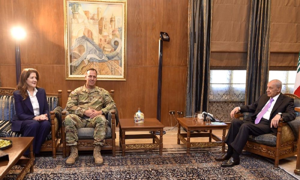 إستقبل رئيس مجلس النواب نبيه بري في مقر الرئاسة الثانية في عين التينة، قائد المنطقة الوسطى الجنرال مايكل كوريلا بحضور السفيرة الاميركية دوروثي شيا والوفد المرافق.