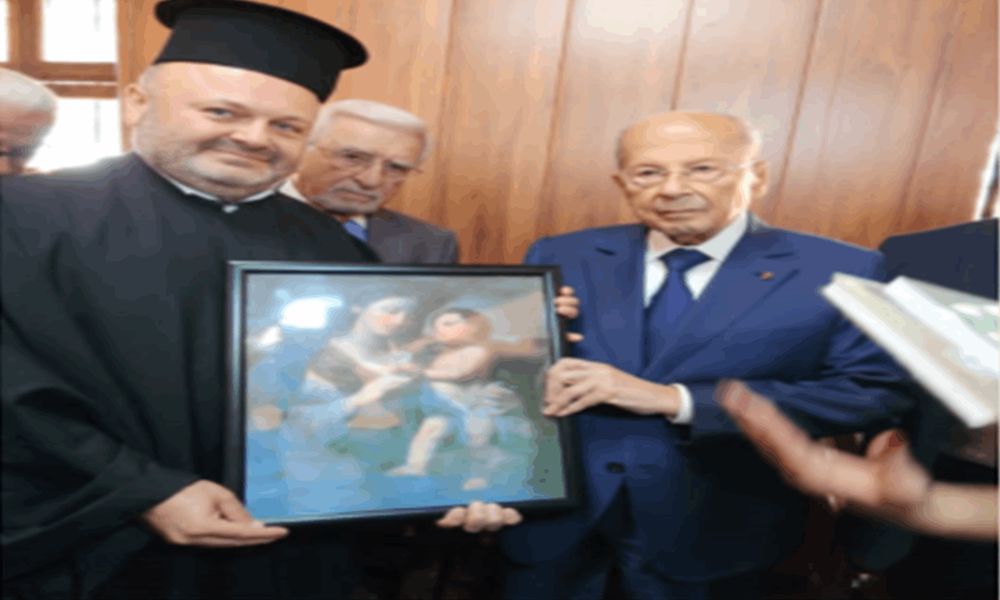 وتوجه إلى كنيسة السيدة العجائبية المرممة حديثًا، قاستقبله رئيس الدير الاب سيرج عبد وقدم له ايقونة السيدة العجائبية عربون محبة وتقدير.