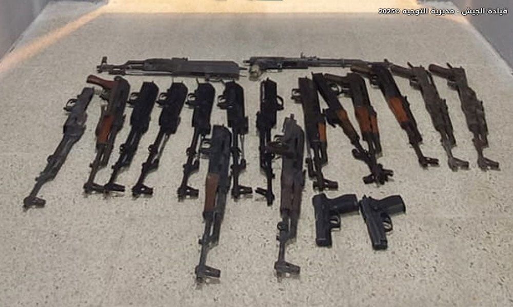 أعلنت قيادة الجيش – مديرية التوجيه أنه نتيجة ملاحقة المتورطين في الاتجار بالأسلحة والمخدرات في منطقة صيدا، أوقفت دورية من مديرية المخابرات في بلدة عنقون – صيدا المواطن (ح.م.) لاتجاره بالأسلحة الحربية، وضبطت في منزله كمية كبيرة منها.