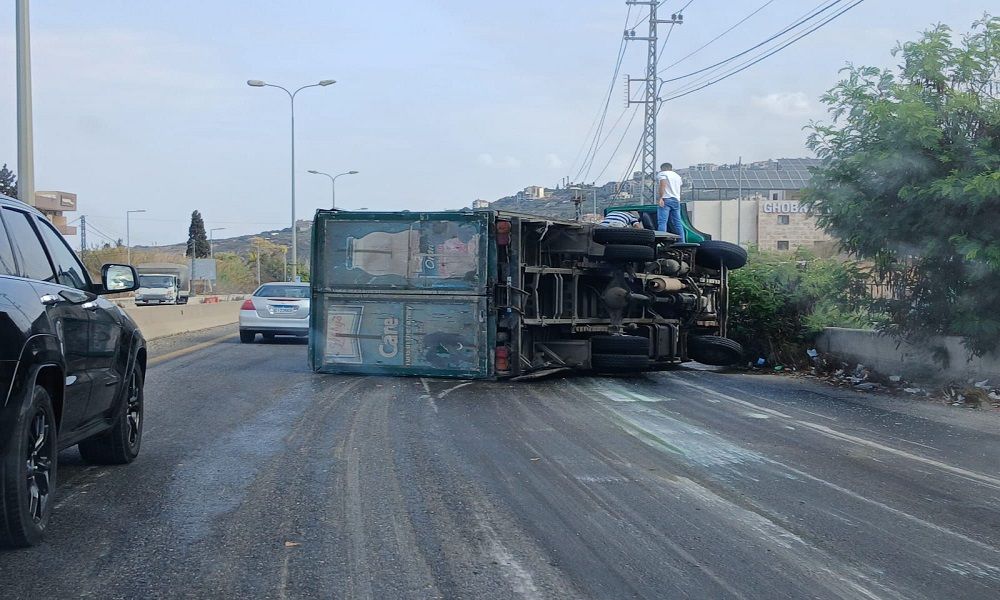 انقلبت شاحنة، صباح اليوم الأحد، على المسلك الشرقي لأوتوستراد عمشيت، ما أدى إلى زحمة سير خانقة.