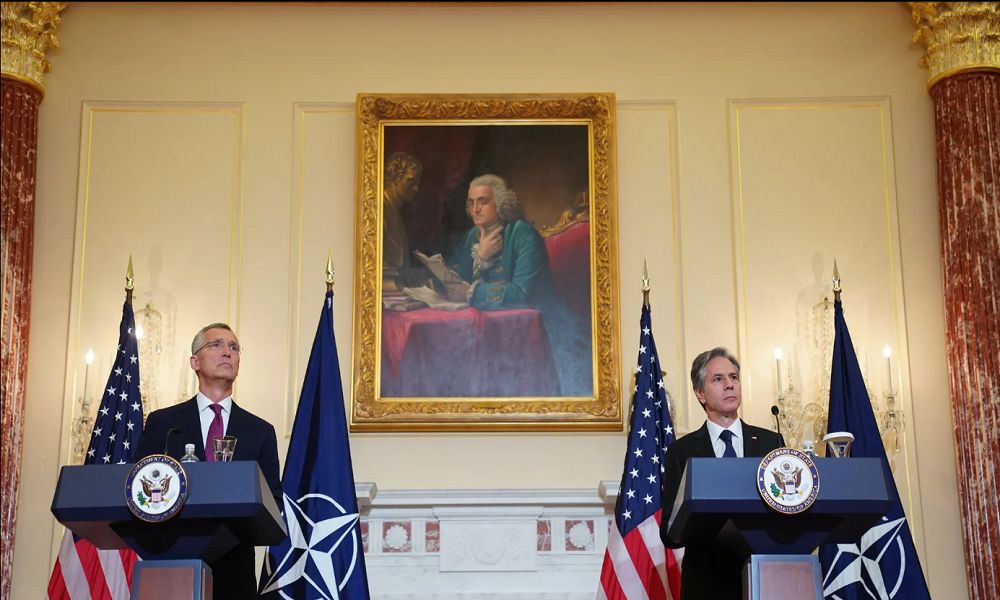 وقال بلينكن، خلال مؤتمر صحفي لوزير الخارجية الأميركي والأمين العام لحلف شمال الأطلسي “الناتو”، ينس ستولتنبرغ، إن “بلاده ستعمل على تقوية العلاقة مع الاتحاد الأوروبي ودول المحيط الهادئ.”