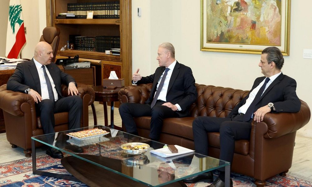 بحث رئيس الجمهورية جوزاف عون مع وزير الخارجية والمغتربين يوسف رجي، ومدير الشؤون السياسية في الوزارة السفير إبراهيم عساف، في عدد من المواضيع التي تعمل الوزارة على إنجازها.
