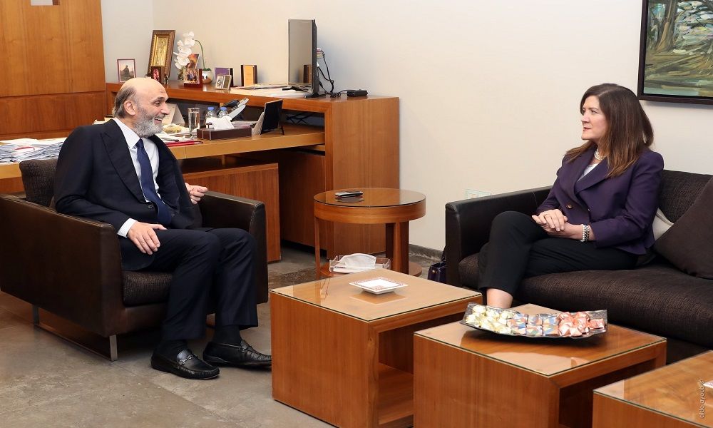 عرض رئيس حزب “القوات اللبنانية” سمير جعجع مع سفيرة الولايات المتحدة الأميركيّة في لبنان دوروثي شيا في معراب، لآخر التطورات السياسية في لبنان والمنطقة.