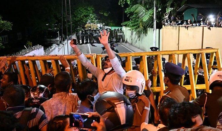 واحتشد مئات الرجال والنساء ليل الخميس الجمعة أمام منزل جوتابايا راجاباكسا الخاص في العاصمة وطالبوه بالتنحي، قبل أن تطلق الشرطة الغاز المسيل للدموع وخراطيم المياه لتفريقهم.