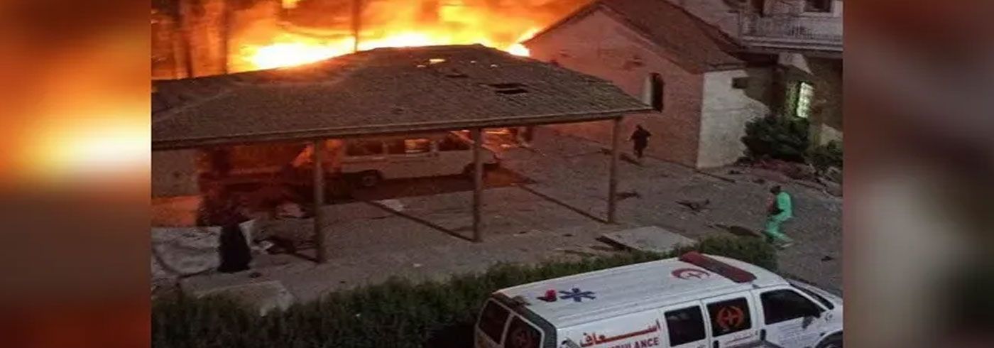 أظهر مقطع فيديو متداوَل عبر مواقع التواصل الاجتماعي لحظة استهداف إسرائيل مستشفى الأهلي المعمداني في قطاع غزّة، وما تبعه من كرة نار أشعلت سماء المكان.