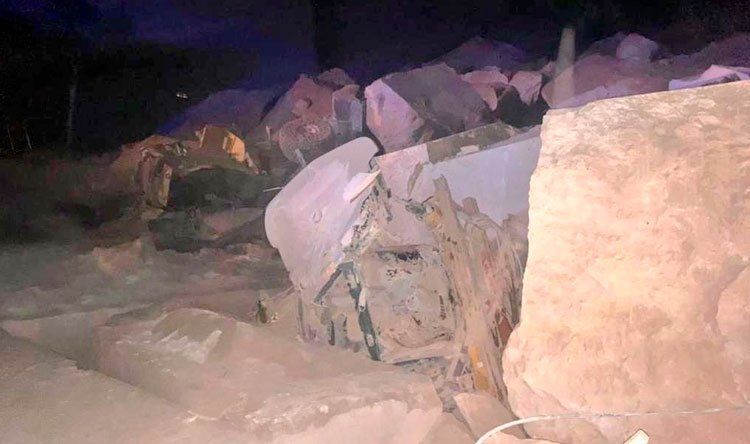 وأضافت الهيئة “لا تزال الانهيارات الصخرية مستمرة وتعوق عمليات البحث عن المفقودين” مشيرة إلى وجود “عمال” عالقين تحت الانقاض.