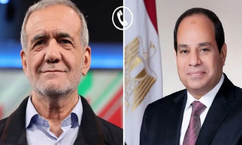 تلقى الرئيس المصري، عبد الفتاح السيسي، الإثنين، اتصالا هاتفيا من الرئيس الإيراني مسعود بزشكيان، تناولا فيه آخر التطورات في المنطقة.