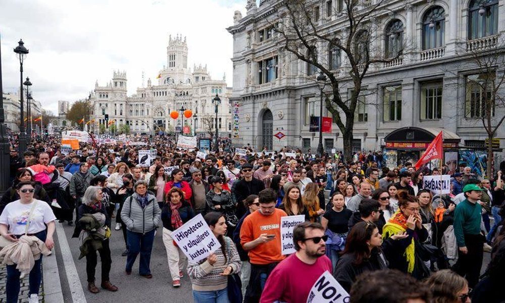 وتظاهر الآلاف في العاصمة مدريد، إلى جانب برشلونة وأكثر من 30 مدينة أخرى في مسيرة نظمها نشطاء الإسكان وبدعم من أكبر النقابات العمالية في إسبانيا.
