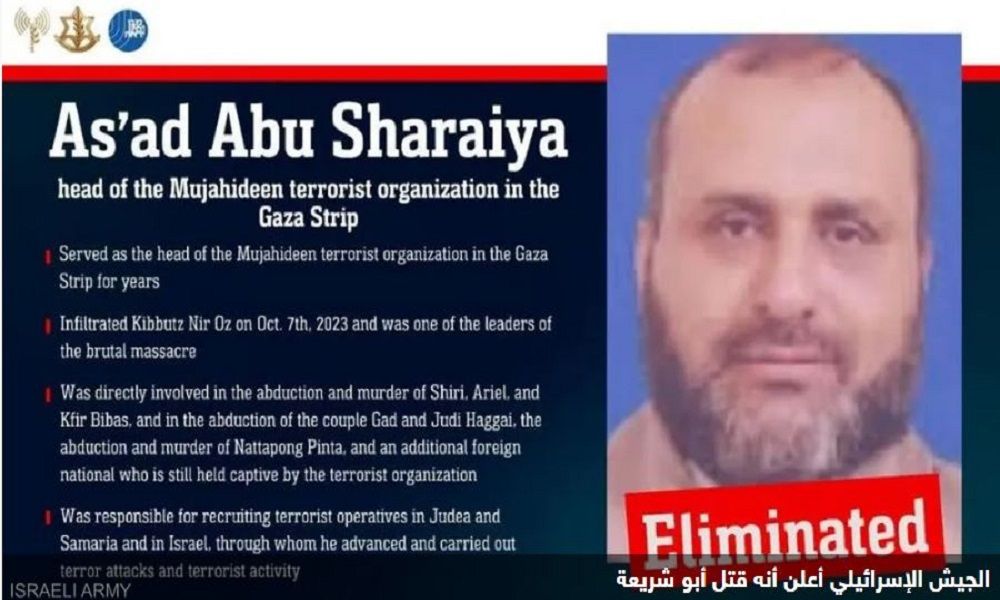 وذكر الجيش الإسرائيلي أنه قتل “قائد كتائب المجاهدين أسعد أبو شريعة” في مدينة غزة شمالي القطاع المدمر، في عملية خاصة مشتركة للجيش وجهاز الأمن الدخلي (الشاباك).