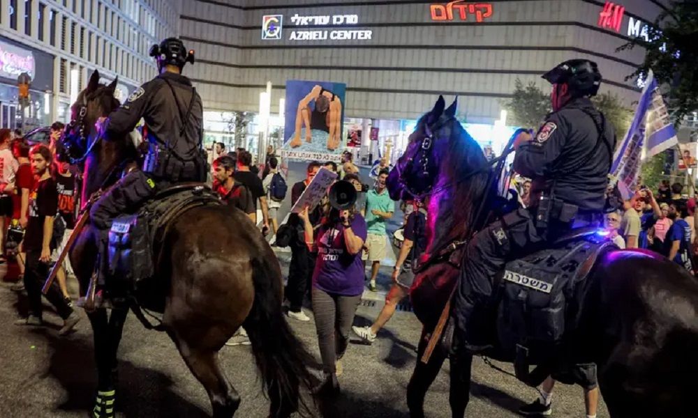 تظاهر الآلاف في شوارع تل أبيب، أمس السبت، مطالبين بإنهاء الحرب في غزة، غداة تعهد الحكومة الإسرائيلية بتوسيع الحرب والسيطرة على مدينة غزة.
