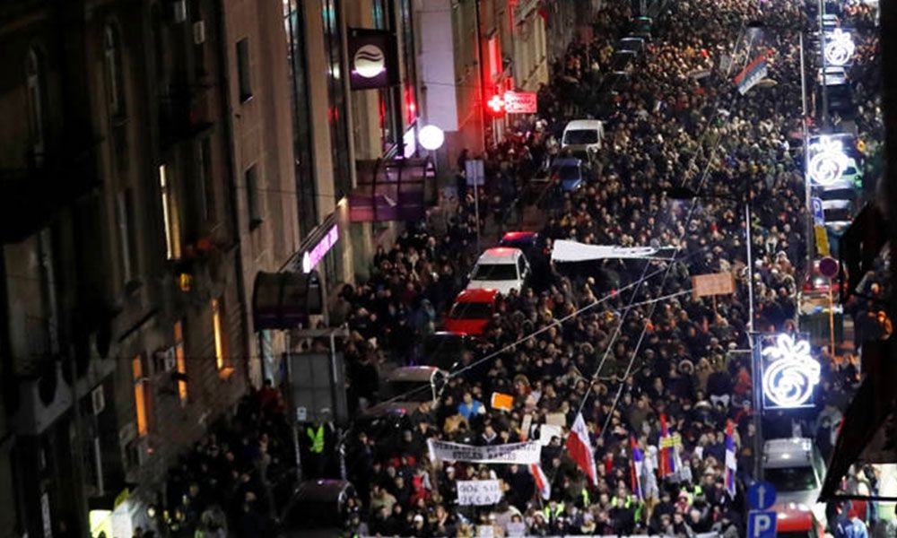 وانطلقت احتجاجات في مدينة فاليفو (الواقعة على بعد 100 كم غرب بلغراد) مساء السبت، بعد انتشار مقاطع فيديو على مواقع التواصل الاجتماعي تظهر عنفا من الشرطة ضد متظاهرين في الأيام السابقة.