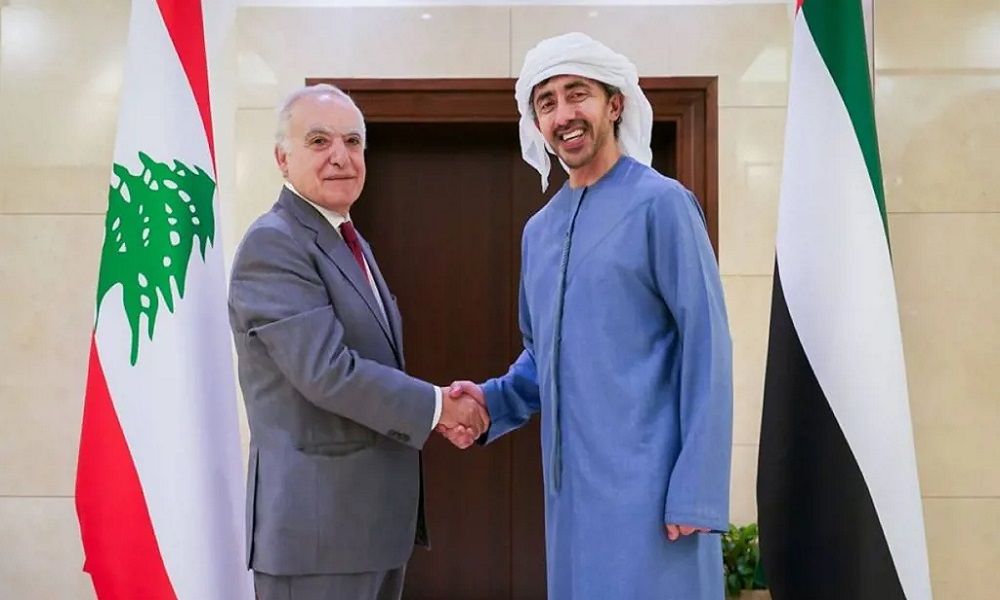 وتطرق اللقاء إلى مجمل التطورات الإقليمية والمستجدات على الساحة اللبنانية، وأعرب الشيخ عبدالله بن زايد آل نهيان عن “تمنياته للجمهورية اللبنانية الشقيقة وشعبها دوام الاستقرار والازدهار، مشيداً بالعلاقات الأخوية بين البلدين”.