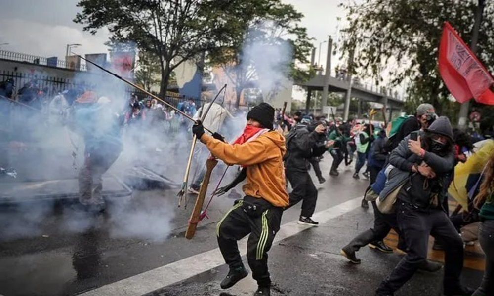 هاجم متظاهرون في كولومبيا السفارة الأميركية بالأقواس والسهام، بالإضافة إلى متفجرات ومواد حارقة، مما أسفر عن إصابة أربعة من رجال الشرطة.