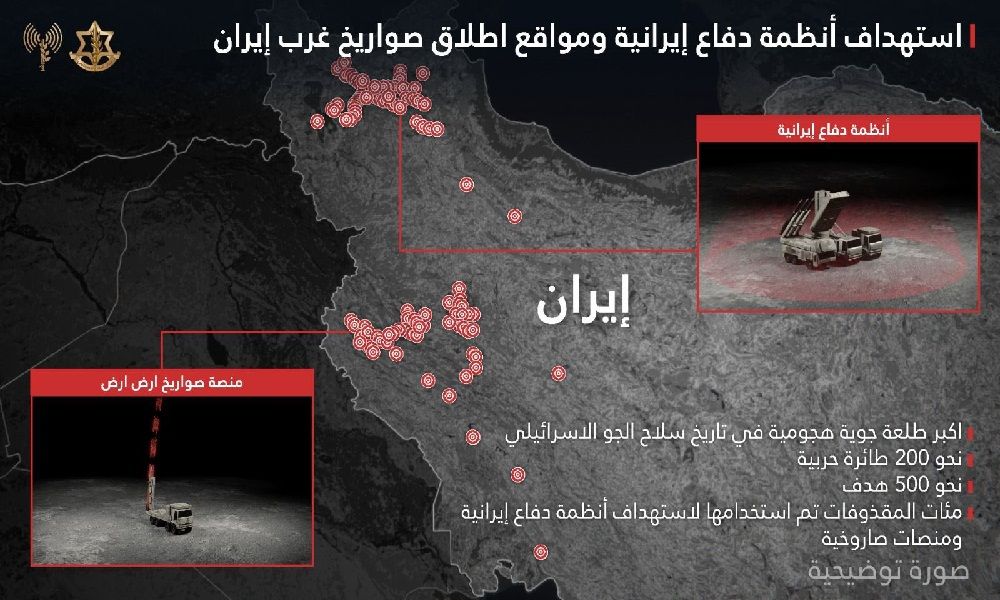 نشر المتحدث باسم جيش الدفاع الإسرائيلي سابقا أفيخاي أدرعي على حسابه في اكس تفاصيل “أكبر طلعة هجومية” في تاريخ سلاح الجو الإسرائيلي، حيث نفذت نحو 200 طائرة مقاتلة ضربة جوية واسعة النطاق ضد الوحدات الصاروخية وأنظمة الدفاع الجوي التابعة للنظام الإيراني غربي ووسط إيران.